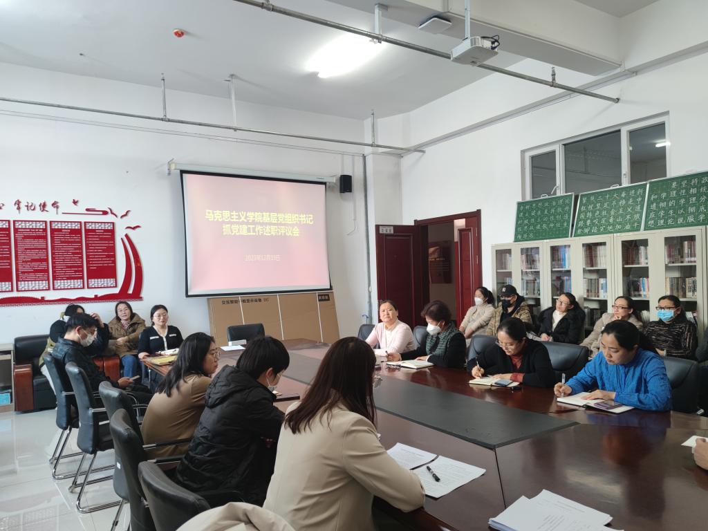 为认真贯彻落实党的二十大精神,深入推进全面从严治党,全面落实党组织书记管党治党政治责任,更好的推进党的建设新的伟大工程,发挥各党支部在推动学院各项事业发展中的战斗堡垒作用,12月19日下午,MG冰球突破官网召开党支部书记抓党建工作述职评议会,学院党总支书记刘凤琴主持会议,学院全体教师党员参加会议。
