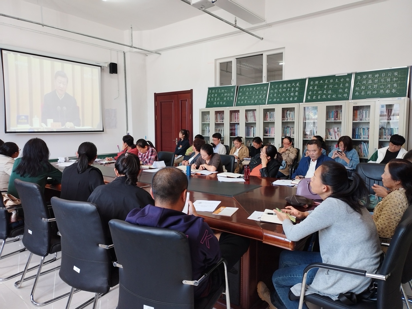会上强调,全体教师要把学习宣传贯彻习近平总书记重要讲话精神作为一项重要政治任务,及时学、带头学,系统学、深入学,深刻认识和把握丰富内涵、精神实质、基本要求;同时要把学习习近平总书记近期重要讲话精神同学习《习近平谈治国理政》第四卷结合起来,牢牢把握新时代新征程党的中心任务,提出的新思路、新战略、新举措,切实把思想和行动统一到重要讲话精神上来,以实际行动迎接党的二十大胜利召开。