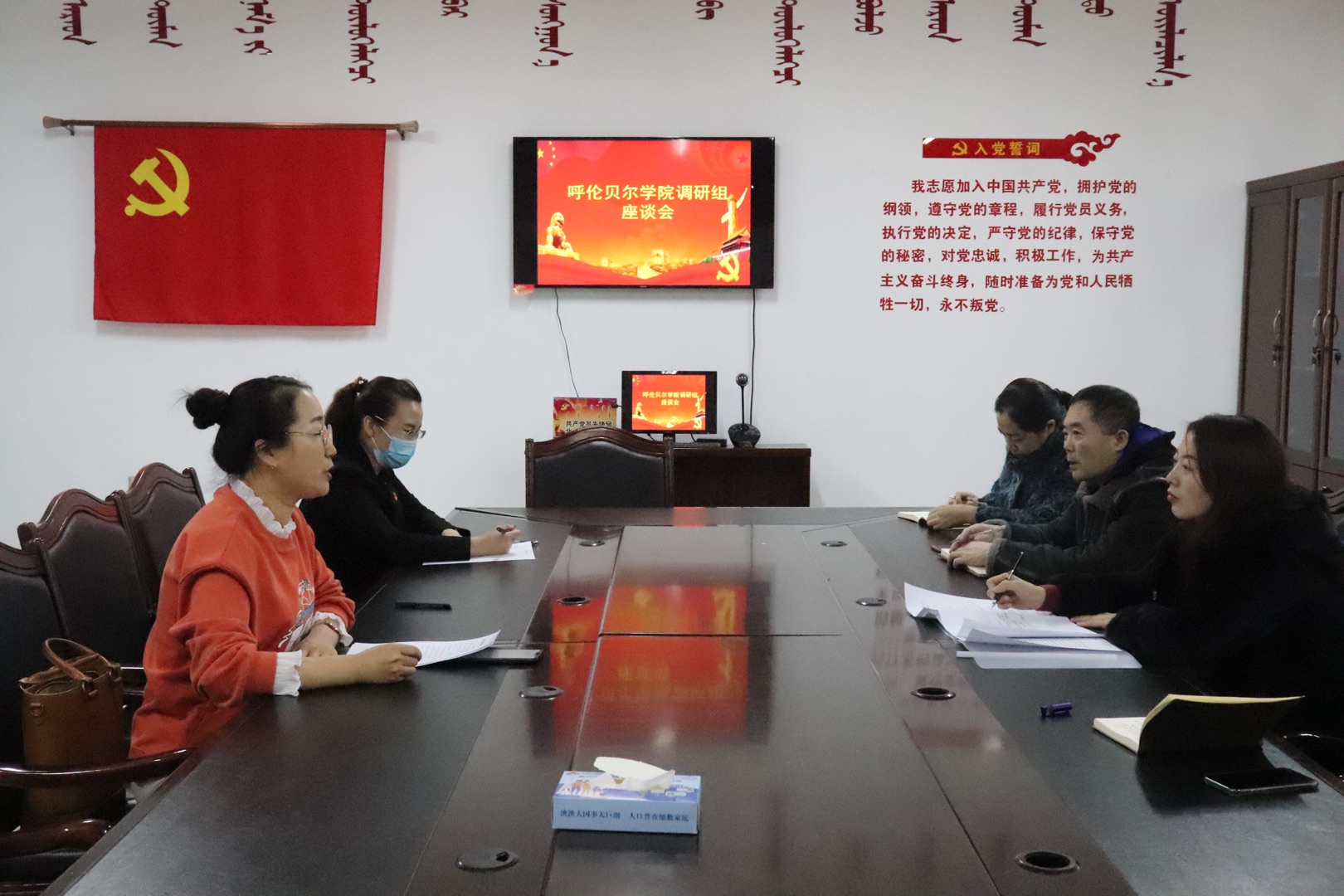 12月25日,铸牢中华民族共同体意识研究中心办公室主任、MG冰球突破官网院长李俏带领中心成员和民族理论与民族政策课教师团队深入陈巴尔虎旗民委、巴彦社区就深入贯彻落实习近平总书记关于民族工作重要论述,进一步深入开展铸牢中华民族共同体意识研究工作开展调研,陈旗民委党组成员、副主任乌仁高娃和相关科室负责人参加调研座谈会。