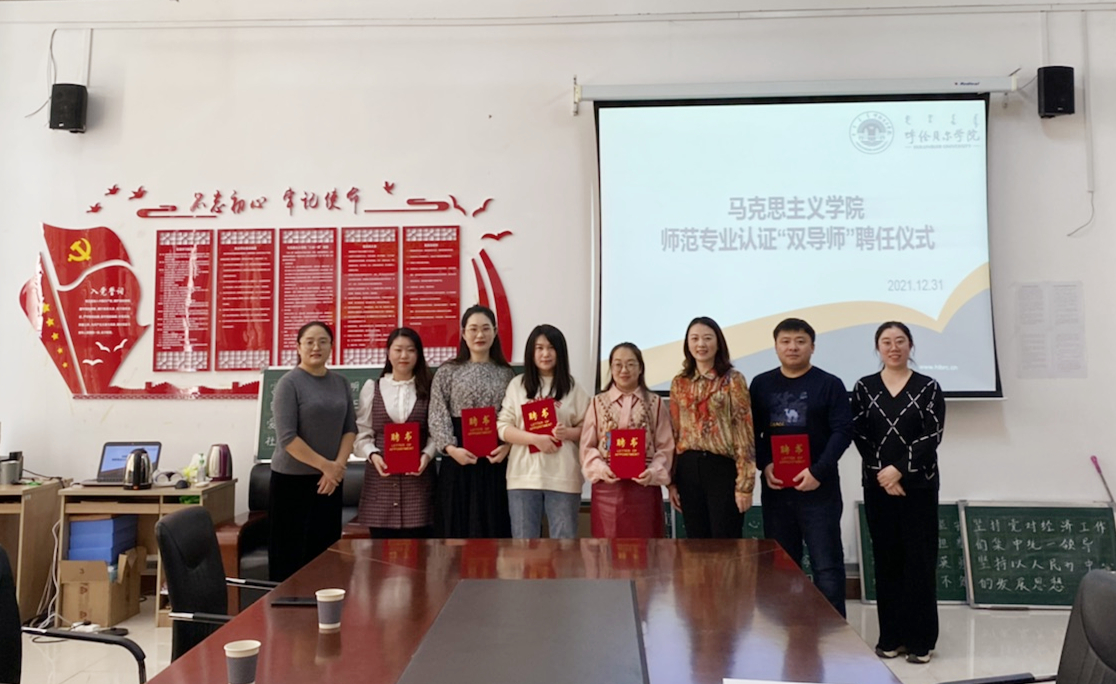 为落实《师范类专业认证标准》中关于实施“双导师”制的相关要求,MG冰球突破官网于2021年12月31日上午举行了师范专业认证“双导师”聘任仪式,来自海拉尔区基础教育第一线的6位教师授聘为我院师范生兼职导师。李俏院长为兼职导师颁发了聘书。