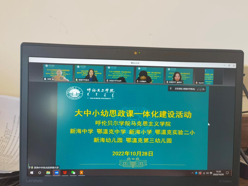 为推进大中小幼思政课一体化建设,强化思想政治教育人才培养的针对性、目标性和连续性,10月28日,冰球官网MG冰球突破官网、新海中学、鄂温克中学、新海小学、鄂温克实验二小、新海幼儿园和鄂温克第三幼儿园齐聚云端,共同举办大中小幼思政课一体化建设活动。