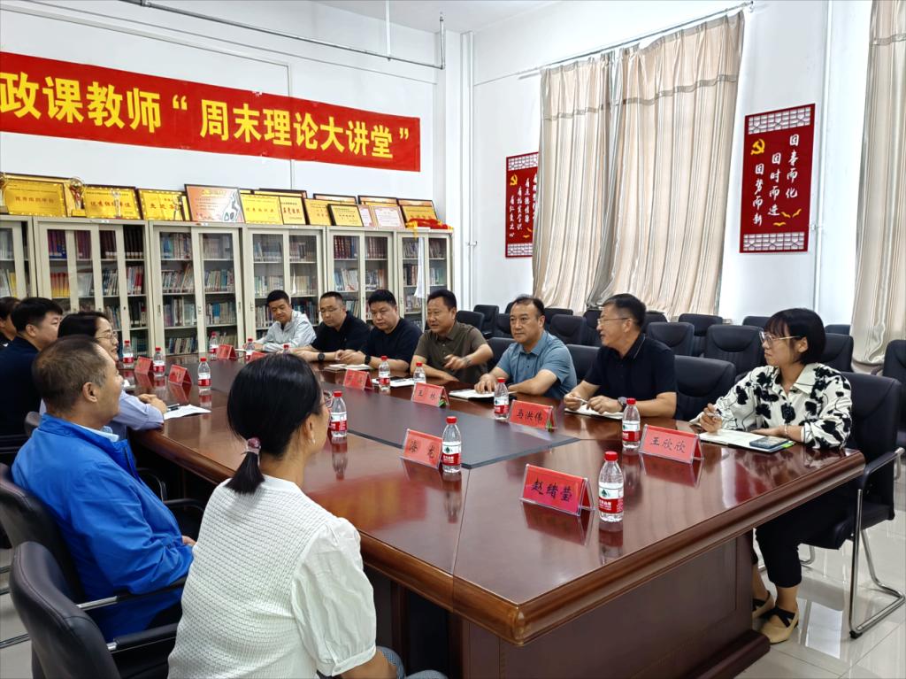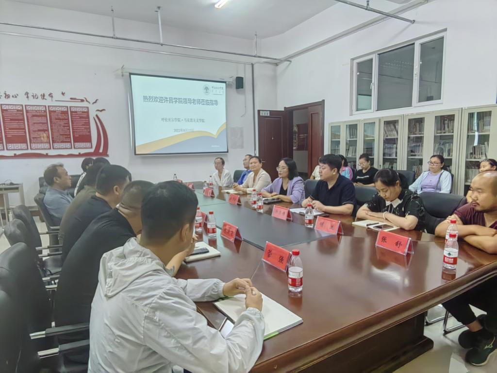 8月12日下午,冰球官网MG冰球突破官网与许昌学院在崇文楼B123会议室开展“大思政”课综合建设能力提升专题座谈会。许昌学院党委副书记孙海、党委宣传部部长王林、科研处副处长兼中原农村发展研究中心副主任马洪伟、MG冰球突破官网党总支副书记岳凯声、MG冰球突破官网副院长林云飞、MG冰球突破官网思想政治教育教研室主任菅强、MG冰球突破官网党政办公室副主任王欣欣,冰球官网MG冰球突破官网院长吴秀芳、党总支副书记刘琳、副院长明兰、各教研室主任及教师代表参加座谈会。